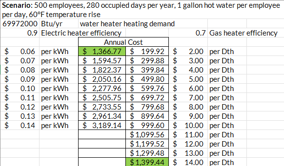 A 70% efficient gas appliance is still cheaper to run than an electric appliance that’s 90% efficient. That’s true all the way to gas being $14/DTH, which takes some pretty wild market distortions to achieve.